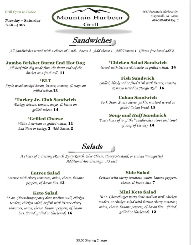 Whether you’re looking for a succulent sandwich, hearty hamburger, a doggone good hot dog, scrumptious salad, crispy chicken, or flavorful fish—and much more, Mountain Harbour Grill is the place to be.