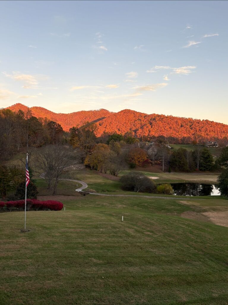 Enjoy your meal in a relaxed setting alongside a beautiful fireplace or outside overlooking the golf course with majestic mountain views.